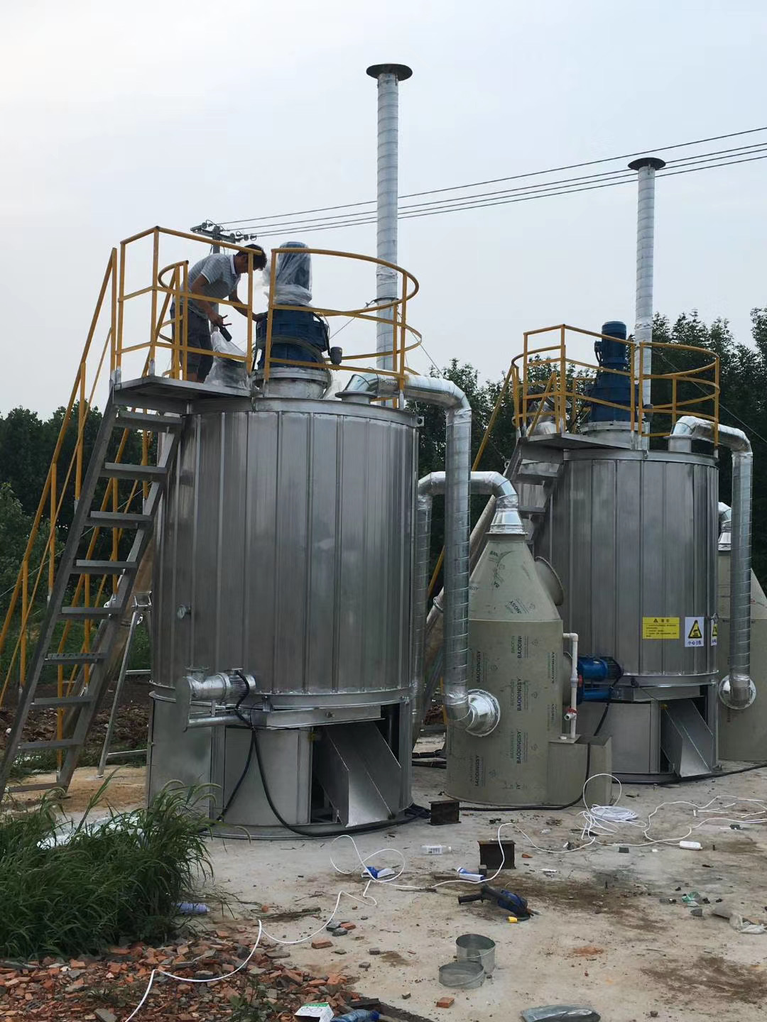 添加进鸡粪发酵罐,进行高温好氧发酵 ,保持罐内温度60-70度左右,进行高温好氧发酵。